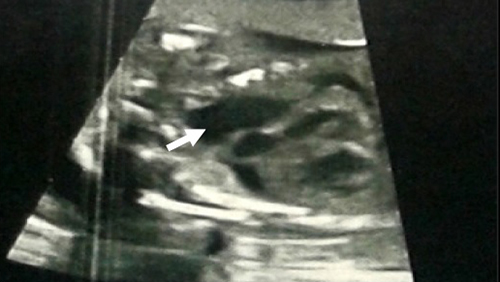 Se realizó ecocardiografía fetal a las 19 semanas + 6 días en consulta privada, cuyos hallazgos positivos fueron cardiopatía grave y compleja, cardiomegalia, válvula pulmonar ausente con dilatación aneurismática de arteria pulmonar y sus ramas, doble lesión de válvula aortica, ambos vasos con flujos en reversa ondas atrio ventriculares patológicas, derrame pericárdico. Perfil hemodinámico: alterado ausencia de velocidades diastólicas en arteria umbilical pulsatilidad en vena umbilical, ductus con onda a en reversa, istmo de la aorta con reversa en diástole, ondas de flujo en válvula aorto-pulmonar y atrioventriculares patológicas planteándose los siguientes diagnósticos: Embarazo de 19 semanas + 6 días. Ciemopatía cardiaca compleja: cardiomegalia, síndrome de válvula pulmonar ausente con doble lesión de válvula aortica e insuficiencia cardiaca.