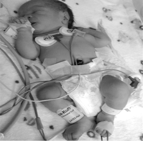 La paciente es interrumpida mediante operación cesárea segmentaria el dia13/06/2016, a las 36 semanas de gestación y se obtiene recién nacido masculino quien respiro y lloro al nacer, peso: 2.445kg, talla: 49 cms. La evaluación postnatal tomada de la historia clínica de cardiología pediátrica del Hospital Central “Dr. Enrique Tejera” fetal concluye: dominancia de cavidades derechas VD y AD, no se detecta derrame pericárdico, foramen oval amplio de 10mm; válvula tricúspide, se capta insuficiencia pulmonar con gradiente pico 1,70m/seg; septum interventricular defecto septal ventricular de 5mm; anatomía pulmonar dilatada, arcoaórtico dilatado y arco ductal normal. Se evidenció válvula pulmonar displasia con doble lesión a predominio de estenosis.
