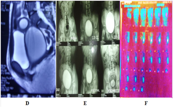 A las pacientes se les realizaron además de ecografía pélvica, estudios complementarios como RMN y TAC de abdomen y pelvis con contraste, (dos casos); con el fin de establecer las referencias anatómicas de los órganos por contigüidad y la permeabilidad o no de ambos hemisistemas- Por la asociación con alteraciones renales se realizaron otros estudios como: gammagrama renal con DMSA, la cistografía miccional retrograda y / o urografía de eliminación (Fig. 4).