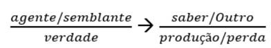 O objeto a, representado pela produção, é aquilo que garante a impossibilidade entre o agente e o Outro. Tal produção não tem, em qualquer caso, relação com a verdade. Toda impossibilidade nos deixa em suspense quanto à sua verdade, como se essa impotência, situada entre os lugares da produção e da verdade, fosse uma proteção da verdade do agente. Não é por acaso que Lacan (2007) conclui que a verdade é irmã do gozo. Isso porque, quando tomada pelo sujeito como objeto de amor, a verdade entorpece o apaixonado e encobre todas as incidências do impossível do real em sua experiência (ELIA, 2002).