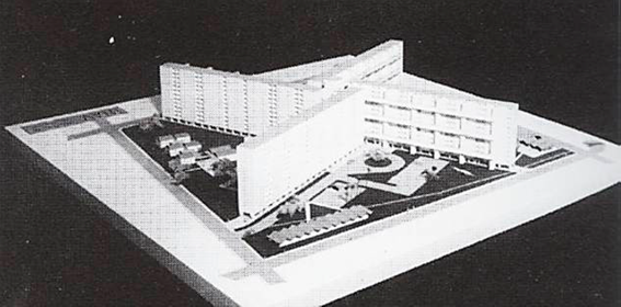 Estos mismos autores asociados al ingeniero Bartolomé Bestard 15 proyectaron el edificio El Pontón en la manzana comprendida por las calles Manglar, Clavel, Nueva del Pilar, Clavel y Oquendo, en Centro Habana. El edificio, destinado a maestros y personal docente, incluía 576 apartamentos, organizados en 4 alas de doce niveles, que giraban sobre un núcleo central de comunicaciones, formando una estructura esvástica en la supermanzana. La distribución de los apartamentos se realizaba mediante galerías horizontales externas, separadas de la edificación y comunicadas a través de puentes. Esta solución garantizaba la privacidad de los apartamentos y una adecuada iluminación y ventilación natural. En el basamento se ubicaron los servicios públicos, entre los que se encontraban estacionamientos, áreas de juego y comercios y piscina. (Figura 21)
