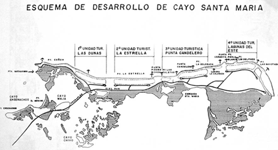 En esa dirección, el compañero Fidel Castro, en variadas intervenciones respecto al desarrollo del turismo en ecosistemas frágiles y particularmente en cayo Santa María ha señalado: “cada uno agarraba un pedazo de playa y construía donde le daba la gana hasta la misma orilla del mar. Ustedes saben que eso destruye las condiciones naturales. Me han contado de diversos lugares del mundo donde mucha gente empezó a construir desorganizadamente, y afectaron las características naturales de esas playas”, 8 y en otro momento: “un turismo integrado a la naturaleza, que es como se ha dado en llamar; no es cuestión de construir rascacielos, de amontonar cemento a la orilla del mar, sino de hacer construcciones verdaderamente hospitalarias, atractivas y humanas, que es lo que quiere el turista. Ningún turista quiere estar en una jaula por allá arriba de un piso 20, es la verdad, quiere otra cosa, y ese es el turismo que nos proponemos desarrollar. Podemos evitarnos los errores que han cometido casi todos los países que han desarrollado el turismo y que han destruido la naturaleza, que han construido hasta en la misma orilla del mar”, 9..., y para culminar hablando de cayo Santa María sentenció…“cayo Santa María es un Varadero, solo comparable con Varadero”, 10.