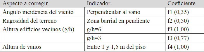 La Tabla 1 muestra los criterios y valores de los coeficientes de corrección utilizados para esta investigación.