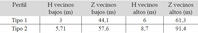 Perfil tipo 1: Edificio de una sola tira, en los que se evaluaron los vanos de fachada orientados a la base del valle. La Figura 5 muestra el perfil con los vecinos de un piso y dos pisos: