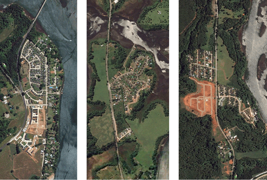 El sector de Torobayo se mantuvo apartado de la vida de la ciudad, siendo un terreno de carácter rural, alejado de los límites urbanos, hasta que en 1987 fue conectado a la Isla Teja mediante el Puente Cruces, que unió a Valdivia con Niebla. Tras su inauguración y la posterior ampliación del límite urbano hasta la costa, empezó a poblarse esta área con la construcción de condominios privados, con los atributos propios de la ciudad dispersa (Figura 14). Las inmobiliarias comenzaron a competir por adquirir los mejores terrenos, principalmente con vistas panorámicas a la ciudad o sitios ubicados en las riberas del río. Desde la inauguración de las urbanizaciones Los Notros, en 1995, Los Silos de Torobayo, en 2003, y Alto del Cruces, en 2004, la población del sector Torobayo continúa en aumento. (Figura 15)