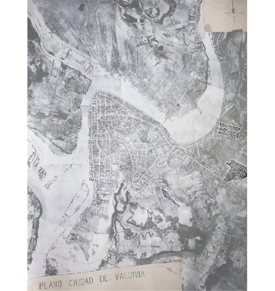 Del mismo modo que sucedió con el incendio, el terremoto de 1960 trajo consigo una modernización la morfología urbana. “Tras el desastre, se congeló todo el estado de desarrollo post-industrial que la ciudad poseía, y se configuró una nueva morfología urbana a la cual la ciudad se debió adaptar” 25. En la Figura 5 se aprecia un plano de la ciudad dibujado en el siglo XVIII, que muestra “el curso de numerosos esteros y brazos de ríos que cruzaban el perímetro de la antigua Valdivia. Con los avances, tantas veces imprevistos, del desarrollo y la urbanización progresiva de la ciudad, tales oquedades fueron rellenadas con cascajo y tierra para construir sobre ella toda clase de edificaciones. (Figura 5)