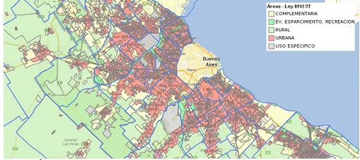 Los principales instrumentos con los que se cuenta hoy en América Latina para intervenir sobre estos territorios son los códigos y/o planes urbanísticos. Buenos Aires no es ajena a ello. El Código de Ordenamiento Territorial: el Decreto Ley 8912/77, divide la Región Metropolitana de Buenos Aires en zonas. Este Código, que es sancionado en 1977, es la expresión normativa del Plan Regulador de Buenos Aires [15]. Es decir, que el espacio de I-UR de Buenos Aires está normado por un instrumento cuyos conceptos corresponden a la ideología urbanística de hace más de cuatro décadas.