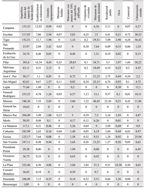 Distribución de los usos de suelo en el borde de Buenos Aires