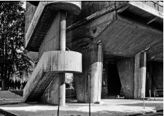 Se entiende que el uso del adjetivo “bruto”, en este caso, no está relacionado con las acepciones en francés del término concernientes con la estupidez o la vida en naturaleza; más bien se conecta con la definición “quien está en el estado en que la naturaleza lo ha producido, cuyo material no ha sido modificado o muy poco transformado”13 [24]. Trasladando la idea a la realidad arquitectónica, se obtiene un tratamiento de los materiales estructurales y constructivos sin revestimientos ni envolventes, presentados en su forma natural. Es decir, Le Corbusier estableció el concepto de claridad constructiva, de una forma sugerente, muchos años antes de que Banham publicara su artículo de 1955. Bien es cierto que, desde sus inicios, el movimiento moderno predicó la sinceridad de los materiales, pero esta se entendía de una manera superficial, aceptando revestimientos, envolventes o pinturas. Le Corbusier otorga una nueva dimensión al tema, proponiendo una concepción perceptiva sólida y considerando importante, no solo a la superficie, sino también a la masa. Esta diferencia es de suma importancia, pues coloca al brutalismo, en cuanto a interiorización y desarrollo conceptual de la cuestión material, en un nivel reflexivo diferente al del movimiento moderno. (Figura 22)