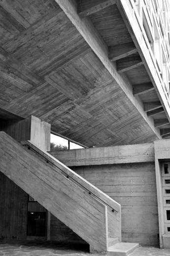Banham realiza un primer acercamiento a la claridad constructiva en su artículo de 1955, caracterizando en dos ocasiones al Nuevo Brutalismo mediante tres cualidades fundamentales. En ambas formulaciones existen dos aspectos comunes: la apariencia de la estructura de forma clara y la valoración de los materiales por sus propiedades inherentes [3]. Estas premisas, enfrentadas a la posición de la Unité d’Habitation, se convierten en una interpretación racionalista de los materiales, siendo aplicables de forma íntegra en la concepción corbusierana pero no llegando a definirla plenamente. La variante de la primera caracterización, ya centrada en el discurso del Nuevo Brutalismo, es la legibilidad formal de la planta [3] obtenida del análisis de la Hunstanton School. Su carácter circunstancial impide que se pueda tomar como una propiedad implícita, reconociéndolo Banham en páginas posteriores. En ese momento corrige la caracterización, eliminando este parámetro e incluyendo la memorabilidad como imagen. Este último concepto se presenta altamente sugerente, pero está cargado de una gran subjetividad a la de hora de determinarlo. Quizá por ello ha sido una característica reiteradamente omitida en los análisis críticos [23], a pesar de la indudable potencia estética de gran parte de los edificios brutalistas. Para Banham [3], la buena arquitectura es memorable, ya que trabaja con la claridad del sistema estructural y funcional. Pero el desarrollo edilicio del brutalismo demuestra que, en muchos casos, se obtiene un gran impacto visual que trasciende a la simple visibilidad de estructura y función. Así sucede en gran parte de los edificios de Le Corbusier posteriores a la Unité d’Habitation, tales como el Convento de la Tourette (1960) en L’Arbresle, (Figura 9) (Figura 10) el Palacio de la Asamblea en Chandigarh (1951-65) (Figura 11) o las Casad Jaoul en París (1954-56) (Figura 12).