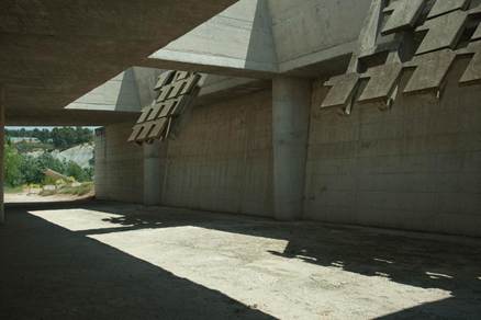 La visión corbusierana carece de demarcaciones, más allá de las propias impuestas por el diseñador y las posibilidades técnicas. Es una elucubración sobre el regreso al origen, a lo primitivo y salvaje; un elogio al dolmen, caracterizado por la mínima transformación, la homogeneidad del material y una geometría proporcionada por la forma en que este viene dado. (Figura 26) La abstracción escultórica pasa a ser parte del lenguaje arquitectónico, generándose motivaciones plásticas, que buscan el dramatismo y la metáfora, y trabajan con la composición, la luz y la textura.
