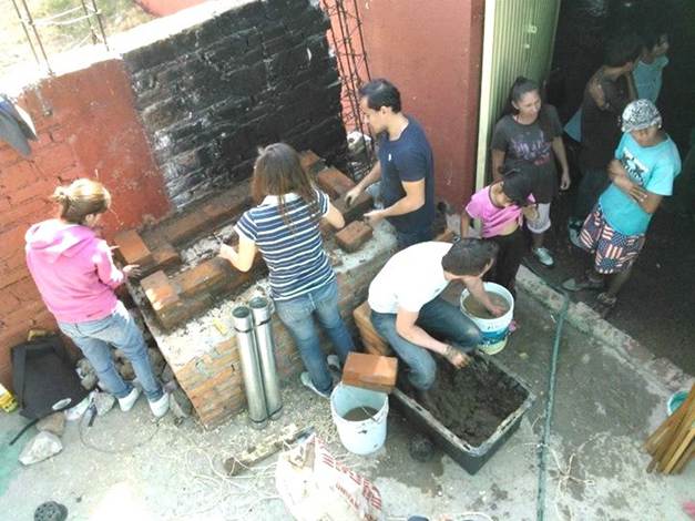 Se diseñó y construyó un espacio adecuado para el comedor consistente en un fogón como alternativa de cocina sin gas, el cual fuera más cómodo para su uso y más eficiente que el existente. Luego de una investigación documental, se encontró el prototipo de la estufa “Patsari”, un modelo a base de tabique rojo para poblaciones sin suministro de servicios, desarrollado por el Grupo Interdisciplinario de Tecnología Rural Apropiada A. C. Esta opción fue analizada y finalmente se optó por replicarla en el lugar. (Figura 2)