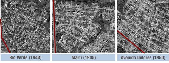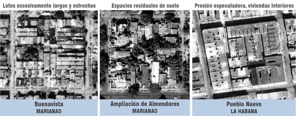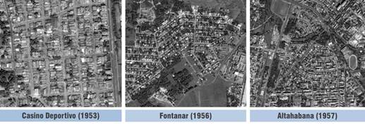 Asimismo, algunas de las parcelaciones surgidas en este periodo constituyeron rellenos intersticiales de áreas ya consolidadas, como resultado de la tardía liberación de fincas para su urbanización, lo que los convertía inevitablemente en zonas de costura entre tramas diversas. En estos casos, los nuevos repartos debían tener en cuenta los límites o linderos de las fincas colindantes ya urbanizadas y sus condicionales de fabricación, aunque esto no fue siempre asumido por los repartistas que, en su afán especulador, generaban uniones no homogéneas perjudicando la ordenación urbanística y la coherencia ambiental [15 p.514]. Santa Inés (1943), El Sevillano (1949) y Parcelación Luyanó Moderno (1950) son repartos surgidos como rellenos intersticiales; también Ampliación de San Miguel (1941), Ensanche de Lawton (1950) y Mirador de Lawton (1952). En tanto en Marianao se fomentaron los repartos Club Residencial Miramar (1941), Séptima Avenida de Miramar (1943), Séptima Avenida (1944), Prolongación de Séptima Avenida [18 p.54] y otros que incluían en su nombre su condición de continuadores de tramas ajenas.