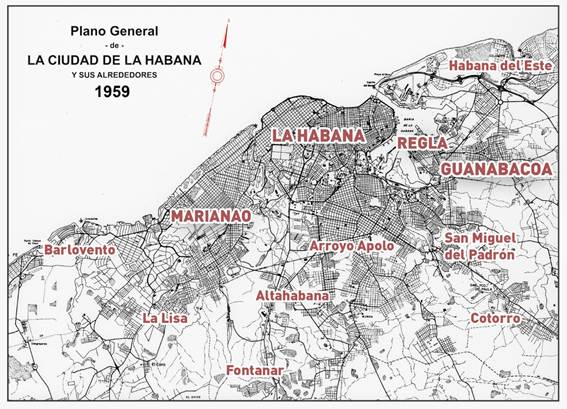 Ya para mediados de la década de 1950, ante los evidentes problemas de la ciudad, se logró un consenso sobre la necesidad de una planificación urbana integral, por lo que en enero de 1955 se creó la Junta Nacional de Planificación (JNP). Su objetivo central era la confección de un Plan Regulador Nacional y de Planes Reguladores Urbanos, sin embargo, su quehacer llegó a ser poco efectivo frente a los intereses económicos y políticos de promotores y propietarios de terrenos. A partir de este lustro, la ciudad extenderá sus límites en una mancha urbana indetenible, perdiendo así su escala caminable. La conquista paulatina de sus áreas suburbanas con “nuevos y florecientes barrios”, encarna la expresión más radical de la anarquía de ocupación territorial, las asimetrías sociales se acentuarán con la misma velocidad que se urbanizan. Si Marianao y La Habana habían protagonizado crecimientos urbanos hacia el sur y el oeste durante las primeras décadas del siglo XX, Guanabacoa lo hará a partir de los años cincuenta, al contener en su seno la promisoria Habana del Este como expansión lógica y natural de la ciudad.