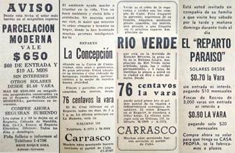 Muchas parcelaciones se interesaron más por la lotificación de propiedades para una rápida venta y no por las condiciones de la urbanización, algunos de ellas, aun carentes de nombre, solo con calles trazadas y no pavimentadas, sin aceras ni redes de acueducto, alcantarillado, gas, comunicaciones, transporte, servicios comunales, comercios, en ocasiones donde solo el tendido eléctrico daba fe de lo ideado urbanizar [31 p.122-123]. Aún en tales condiciones, los bajos precios de los terrenos y sus facilidades de pago, la relativa cercanía a los centros productivos y de consumo de la urbe, y el apoyo de una eficiente propaganda mediática, hicieron que miles de trabajadores compraran parcelas, a veces a partir de un plano que reflejaba solo el proyecto urbanístico, todavía inexistente en el lugar. (Figura 9)