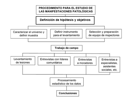 Ante la realidad que se presentaba con este tipo de vivienda en el país, los objetivos que se plantearon estuvieron dirigidos a: conocer cuáles eran las principales familias de lesiones que se manifestaban en los asentamientos y ciudades estudiadas; comparar esos resultados con los datos que se tenían del resto del país; y comprobar si existe un patrón de comportamiento para esos procesos patológicos, tanto en las ciudades estudiadas como en el resto del país, que permitiera establecer recomendaciones para la atención a los mismos.