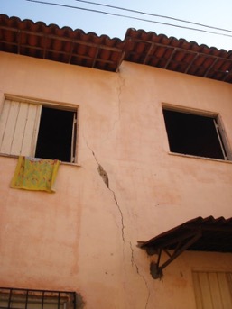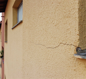 En las paredes también se manifestaron un importante número de lesiones de las familias de fisuras y grietas2, con presencia en más del 26% de la muestra. Los sistemas constructivos que utilizan muros de carga, sean de ladrillos o bloques, como sucedió en estos conjuntos habitacionales, son propensos a este tipo de lesiones. Ellas se tornan importantes cuando interrumpen la continuidad estructural, debilitan la masa del muro y son “cómplices” de otros daños, como cuando se asocian con las humedades. En la Figura 9 la grieta tiene como causa la concentración de tensiones en la esquina inferior de un vano de ventana; y en la Figura 10 la inexistencia de una junta de expansión entre dos edificios pareados, llevó a que el cambio de geometría y los movimientos en la base, provocaran una grieta que afecta más de un nivel y sí puede tener consecuencias para la estabilidad y seguridad.