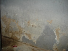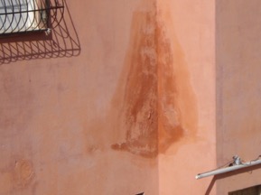En las paredes también se detectaron daños provocados por las diferentes familias de humedades, sobre todo las denominadas accidentales, que tienen origen en las fugas y rotura de instalaciones (Figura 13); pero también en las provenientes del suelo, debido a la ascensión capilar, deficientes drenajes, y otras causas. (Figura 14).