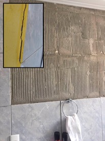 Cuando se trata de enchapes de muros, solución utilizada en cocinas y baños, el nivel de afectación también fue muy alto, más del 48% de las unidades habitacionales presentaban lesiones relacionadas con fracturas, desprendimientos parciales o totales. El proceso en este caso se desarrolla similar al de los pisos, comenzando con el desprendimiento y abombamiento de las piezas, hasta que se desprenden totalmente, como se muestra en la Figura 6.