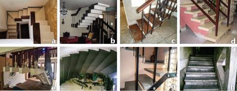 En las viviendas de más de una planta se adoptaron dos soluciones básicas para la escalera: un espacio propio o formando parte de otro, generalmente de uso social. En algunos casos, las cajas de escalera trascienden lo funcional para adquirir cualidades plásticas propias, con formas volumétricas diversas y cerradas, sobresalientes en altura, y en ocasiones con texturas o enchapes en sus superficies que las particularizan en la edificación. Otras diferencias están dadas por la ubicación y dimensiones de sus aberturas, por el tipo y material de su carpintería, y el uso de vidrios translúcidos y de colores. Las escaleras que se integran a otros espacios contribuyen con su expresión, casi siempre aligerada y con atractivos diseños, al realce estético de estos. (Figura 11)