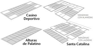 La regularidad parcelaria resultante del amanzanamiento rectangular en tres de los repartos de la ZE favoreció su ocupación por viviendas seriadas, las que constituyeron referentes esenciales de los índices de estándar y calidad para las edificaciones construidas posteriormente en ellos.