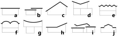 Es frecuente el uso de formas geométricas y puntales variados. La complejidad en el diseño de la cubierta aumenta proporcionalmente con el estándar del reparto, y sus particularidades otorgan individualidad a cada obra. Pueden encontrarse losas planas (enterizas y a desniveles), inclinadas (a dos aguas y a dos aguas invertida), plegadas, curvas (abovedada o invertida) o mixtas. (Figura 7)