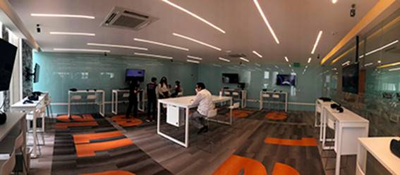 Precisamente las maquetas virtuales, complementarias a las maquetas físicas tradicionales, manifiestan un repunte interesante por los factores de software y hardware ya mencionados, pero además por la política de innovación de la misma Universidad, que considera el avance tecnológico como uno de sus principales ejes de desarrollo. En tal sentido se ha inaugurado recientemente el LIIET (Laboratorio de Inteligencia, Innovación Educativa y Tecnológica), dentro del cual se encuentra el VR Lab o Laboratorio de Realidad Virtual, una sala didáctica con doce estaciones VR donde los alumnos pueden realizar recorridos en tiempo real de sus proyectos 3D, realizar tours virtuales o crear geometría en un entorno kinésico (Figura 1). Las maquetas virtuales favorecen el ahorro de cuantiosos recursos materiales asociados a su elaboración y sus posibilidades parciales o limitadas de reutilización efectiva.