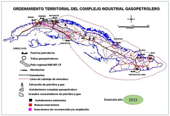 A mis primeros trabajos como proyectista territorial de la producción ganadera, siguieron los de localización de inversiones industriales, los de planeamiento sostenible del desarrollo turístico de un ecosistema frágil de cayería, la actuación como asesor de planeamiento en un proyecto de desarrollo minero- metalúrgico, la dirección científica de la reestructuración de la industria azucarera cubana, los estudios de ordenamiento territorial de la energía eólica, de la energías alternativas, y del complejo industrial gasopetrolero (Figura 2), entre otros.