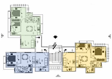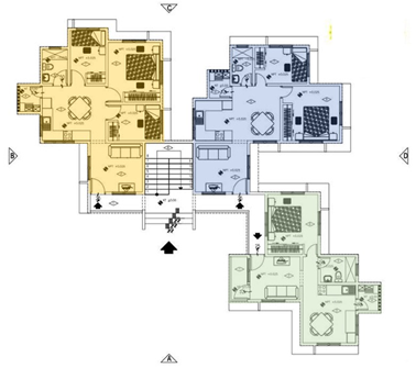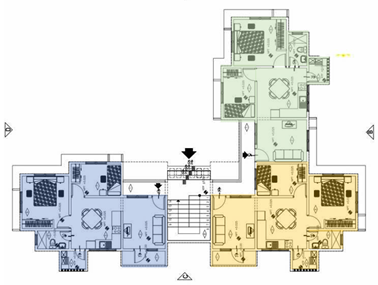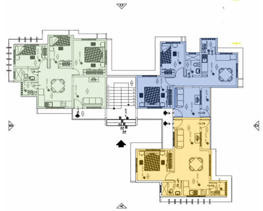 Esta variante está conformada por tres células habitacionales por planta, de uno, dos y tres dormitorios respectivamente. El edificio cuenta con 15 apartamentos, distribuidos en cinco niveles. (Figuras 4 y 5).