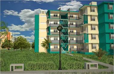 En relación con las propuestas de soluciones volumétricas, se verifica que pueden lograrse diferentes asociaciones entre las células habitacionales, y diversas disposiciones entre los edificios, que pudieran contribuir a evitar la monotonía que se observa en urbanizaciones construidas hasta el momento. Por otra parte, las fachadas escalonadas, que sugieren espacios exteriores más privados y diversos, unido a la presencia de elementos tales como balcones, terrazas, aleros y dispositivos de protección, ofrecen contrastes de luz y sombra, al mismo tiempo que constituyen elementos que enriquecen la solución formal.