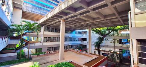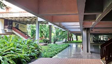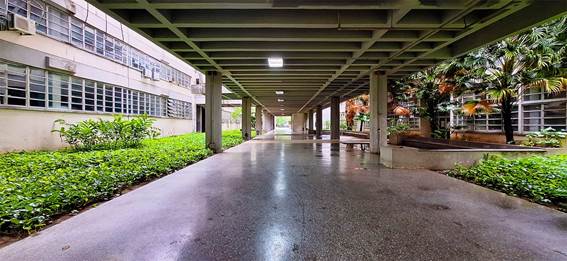 La CUJAE se destaca por su elegancia, por la interconexión de sus espacios abiertos y cerrados mediante un sistema de galerías y por su clara coherencia arquitectónica y espacial. Se establecieron articulaciones muy flexibles a través de una especie de malla que constituye uno de los mayores logros del proyecto, lo que facilitó la creación de sitios de vínculo y reunión, en los que siempre hay mucha vida estudiantil, tanto en las plantas libres, como en sus variados parques exteriores. Esa estructura compositiva permitió la posibilidad de crecimiento sin que en su evolución se perjudicaran las construcciones existentes (Figura 4).