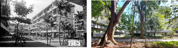 Cada uno de estos espacios fue distinguido con un tratamiento diferenciado de la vegetación dentro de la coherencia del conjunto, como parte del diseño de las distintas zonas: docente, docente-investigación, servicios, residencia estudiantil, áreas deportivas, entre otras. Así, se usan cespederas y plantas trepadoras similares en el sector docente, mientras en la zona de servicios y en las calles se ubicaron árboles para lograr espacios- conexiones-caminos umbrosos.