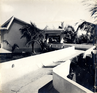 Hay una gradación de espacios que se generan desde el paisaje, en el tratamiento de bordes con caminos (corredores), muros, jardineras, la transición interior-exterior a través de pasajes abiertos y/o aéreos, rescatando el pórtico tradicional cubano, que conducen a unos patios abiertos que articulan cada unidad funcional con este espacio dinámico. (Figura 21) Aparece el patio como elemento tradicional generador de espacios exteriores ligados a unos recorridos que funcionan como distribuidores al aire libre, ambientes de contemplación dinámica del paisaje, introduciendo el concepto de tiempo en la arquitectura.