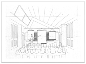 Estas aulas, poseían también ventilación cruzada, pero con 0,75 m de antepecho para permitir mejores vistas al exterior. Al igual que las de la unidad norte, un paño corrido de ventanas, a modo de lucernarios, aprovechaba el desnivel entre los dos faldones de la cubierta, solución que, en ambos casos, facilitaba la iluminación natural cenital. (Figura 10)