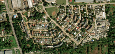 A pesar de que la Ordenanza Municipal para Santiago de las Vegas [27] no aceptaba proyectos donde las calles no tocaran o llegaran a los linderos de las fincas colindantes para propiciar posibles o futuras conexiones, un grupo de repartos no cumplieron con ello y desarrollaron una trama cerrada. Los grupos de manzanas que las integraban se conectaban a la ciudad solo a través de un punto, generalmente el acceso a la urbanización, que lo separaba de la vía a la que se adosaba. Una calle o avenida cercana al perímetro conectaba todas las manzanas a través de un recorrido que bordeaba el reparto, como circuito cerrado, con una hilera continua de lotes perimetrales. De los 11 identificados, son ejemplo: Alturas del Aeropuerto (1955), conectado a la Avenida de Rancho Boyeros por un único acceso; y las parcelaciones Santa Susana (1954) (Figura 13) y Colinas del Cacahual (1958), ambas en el límite sur del TMSV y muy próximos entre sí, con accesos independientes desde la Carretera al Cacahual. (Figura 16)