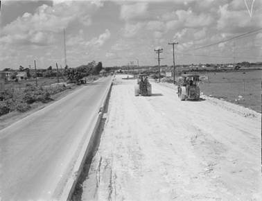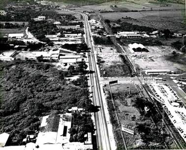 El incremento del tráfico y de las operaciones aéreas llevó a una ampliación del eje de Rancho Boyeros en 1951. Tras su ensanche, se convirtió en una moderna calzada, denominada Avenida de la Independencia o Doble Vía a Rancho Boyeros, cuya franja vial de 30 m de ancho contenía dos sendas de 9 m cada una, un parterre central y amplias aceras a ambos lados [21], que conectó a su vez a las obras de la Plaza Cívica y favoreció la aparición de edificaciones en varias áreas a lo largo de su recorrido, incorporando el TMSV al área metropolitana de La Habana. Años más tarde, fue prolongada su longitud hacia el sur hasta el Mausoleo de El Cacahual y se ampliaron las sendas en este tramo, favoreciendo una mayor circulación de vehículos entre los puntos que conectaba. (Figura 7)