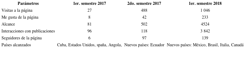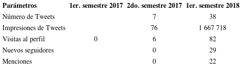 En todos los indicadores que se muestran en la tabla 2 relacionados con la red social Twitter, el primer semestre del año 2018 exhibe las mayores cifras. Así, el número de Tweets es significativo porque en el año 2017 se registra muy poca actividad. Estos abarcan diferentes temas como las actividades que realiza el Centro, la promoción de productos, entre otros. También las impresiones de Tweets aumentaron, pues se generan con imágenes, lo que produce mayor interacción con los usuarios; aumentó el número de “Me gusta”, hay mayor respuesta en los contenidos, son retwitteados nuestros tweets y asciende el número de veces que los usuarios vieron el tweet. En cuanto a los seguidores, aun cuando los datos no son muy altos en el primer semestre del año 2018, son significativos en relación con el año 2017, que no se tenían seguidores y no nos mencionaban en sus tweets.