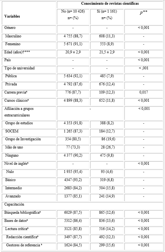 Factors associated to knowledge about scientific journals among Latin American medical students