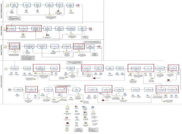 No todas las tareas del proceso implican el uso de la información científica; en algunos casos solo refieren gestión de información. En el flujo del proceso de formación doctoral se reflejan 16 tareas de 42 identificadas, que requieren del uso de la información científica como un componente importante en la investigación, lo que reitera la necesidad de formar en los doctorandos habilidades informacionales para la realización exitosa de las tareas y contribuir con esto a la calidad en la investigación. Para explicar mejor el proceso, se dividió en 4 subprocesos: