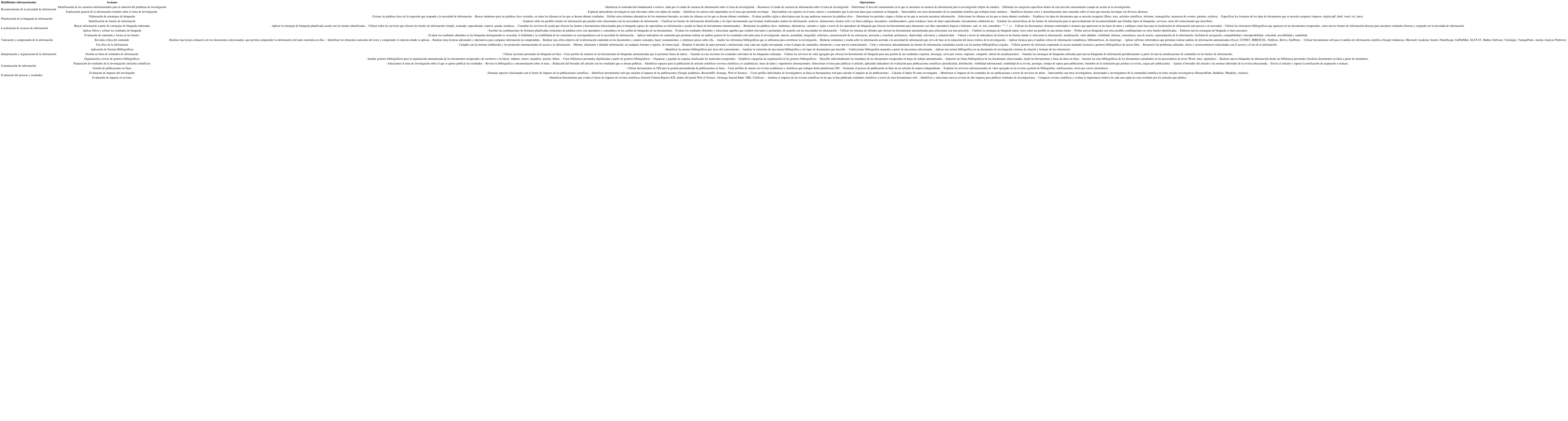 Habilidades informacionales: acciones y operaciones