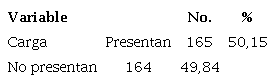 Al analizar la tabla 1 se observa que la mitad de los cuidadores presentaban carga del cuidador.