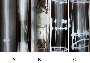 Key words: Bone transport, exposed fractures, infected pseudo arthritis.