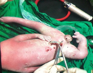 Este caso se presenta con el fin de mostrar una forma muy severa de artrogriposis generalizada, donde hasta la articulación atlantooccipital se encuentra contracturada (de ahí la presentación de cara en el momento del parto). A pesar de tener un polidramnio severo no se realizó diagnóstico prenatal y, por ende, no se pudo sugerir una vía de salida del feto que permitiera su protección.