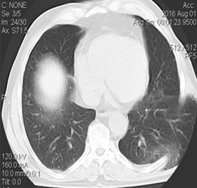 Paciente masculino de 86 años, procedente de área rural, fumador inveterado, con antecedente de EPOC. Acudió a consulta por la presencia de una masa en región lateral izquierda del tórax, de 6 meses de evolución, que aumentó de tamaño y se tornó dolorosa después de una crisis de su enfermedad de base, con tos persistente por un período de siete días. Negó antecedentes traumáticos y quirúrgicos a ese nivel.