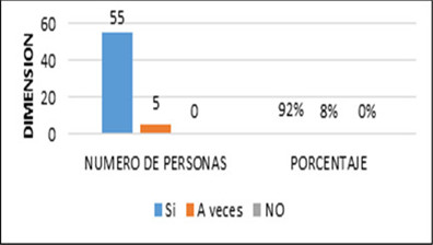 Se estableció la percepción del paciente, donde se determina si el odontólogo le explicó el diagnóstico de su urgencia en la revisión dental. En dicha encuesta, se obtuvieron los siguientes resultados: el 90 % sí, el 8 % a veces y el 2 % no. (Gráfico 4)
