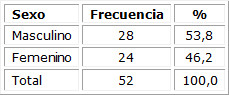 En la tabla 1 se muestran los resultados acordes al sexo, donde se observa un ligero predominio masculino, dado por una escasa diferencia de casos.