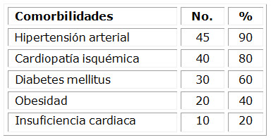 En la tabla 3, donde se hace un análisis de las comorbilidades que afectan a estos enfermos, se encuentra en primer lugar la hipertensión arterial en la casi totalidad de los pacientes, seguida, muy de cerca, por la cardiopatía isquémica y la diabetes mellitus.