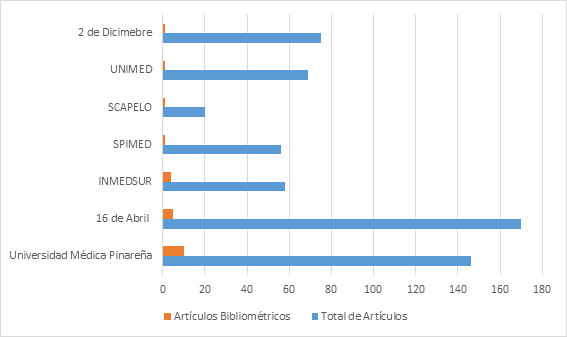 Las revistas Universidad Médica Pinareña y 16 de Abril publicaron un mayor volumen de artículos bibliométricos. Esto puede explicarse por ser las revistas estudiantiles más longevas de Cuba. Por ello adquieren gran trayectoria, experiencia en su gestión editorial y mejor posicionamiento, lo que les permite atraer gran interés de los autores para sus publicaciones, al garantizarle una mayor visibilidad de sus artículos.6