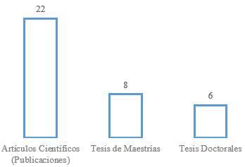 Respecto a la cantidad de artículos científicos que emplean el repositorio, se generaron un total de 22 publicaciones como se muestra a continuación: