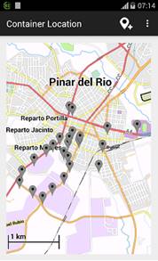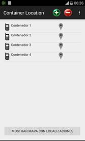 Aplicación instalada en el dispositivo encargado de controlar y ubicar los contenedores en el mapa. Se establece todo el proceso del control de rutas de los contenedores disponibles, dando la posibilidad de mostrar en un mapa en tiempo real y sin necesidad de conexión a internet la ubicación de dichos a través de los mensajes SMS recibidos de las Entidades de Posicionamiento que portan las coordenadas de latitud y longitud del contenedor.